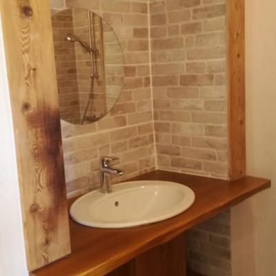 Les dortoirs disposent d'un espace sanitaire commun. Il est composé de 4 douches individuelles à l'Italienne, d'un grand plan de salle de bain avec 4 vasques et d'un petit sauna 2 places infrarouges.
